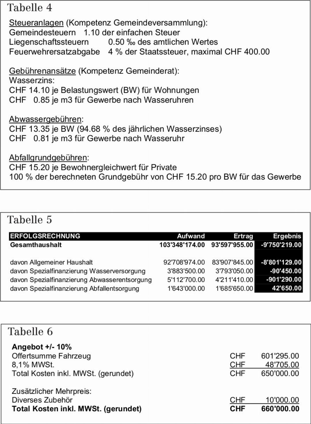Die vorstehenden Ergebnisse basieren auf folgenden unveränderten Steueranlagen und Gebührenansätzen (Tabelle 4).