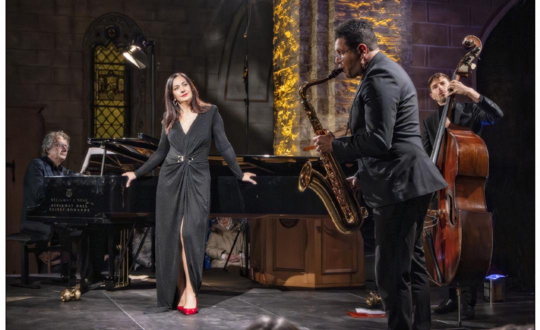 Der Abend gehörte ganz der mehrfach preisgekrönten Opernsängerin Marina Viotti. In «About last Night» nahm sie das Publikum in der Kirche Rougemont mit auf eine Reise durch ihre Liebesgeschichten – von leidenschaftlichen Romanzen über Tagträumen bis zur unerwiderten Liebe und gebrochenen Herzen. Begleitet wurde sie von ihrem Trio bestehend aus Didier Puntos (Klavier), Gerry Lopez (Saxofon) und Antoine Brochot (Kontrabass) sowie dem Überraschungsgast Mark Kurmanbayev (Bassbariton).