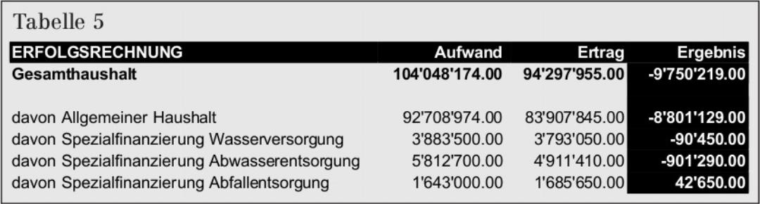 Zudem war die Tabelle 5, «Erfolgsrechnung», falsch abgebildet. Nebenstehend drucken ...