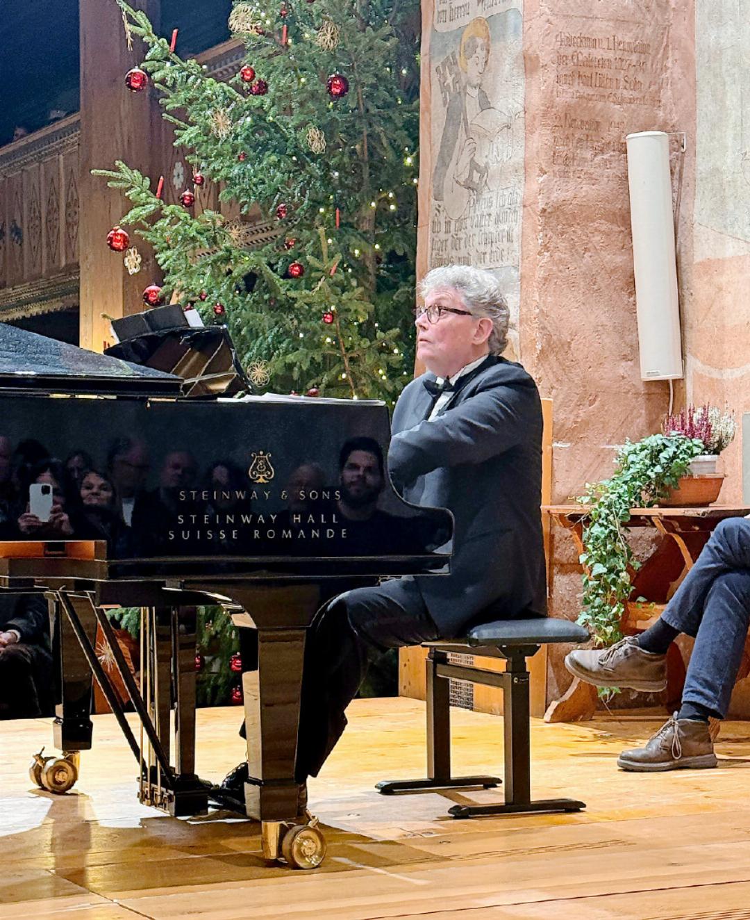 Über die künstlerische Leistung einer solchen Legende der Opernwelt wie Plácido Domingo ein Urteil abzulegen, wäre verwegen und vermessen. Dennoch war man gespannt, wie der heute immerhin fast 85-Jährige das abendliche Programm bewältigen würde. Auch der Allergrösste dürfte ja mit Fug und Recht einmal leiser werden. Nicht so Plácido Domingo. Geradezu begeistert vom regen Treiben im übervollen Gotteshaus betrat er die Bühne und faszinierte sein Publikum auf Anhieb. Freude war bei ihm auch zu spüren, dass er dem Publikum in der kleinen Kirche so nah sein konnte. Es ist bekannt, dass Domingo dies schätzt – und ist ganz im Sinne der Veranstalter.