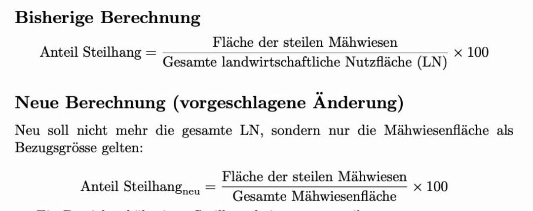 27.11.2025 LandwirtschaftOb Steillagenbeiträge an landwirtschaftliche Betriebe ausbezahlt werden oder nicht, soll künftig durch den Anteil der Mähwiesen bestimmt werden. Eine Motion des Parlaments kritisiert, dass die Bewirtschaftung steiler Flächen unzureichend entschädigt wird.